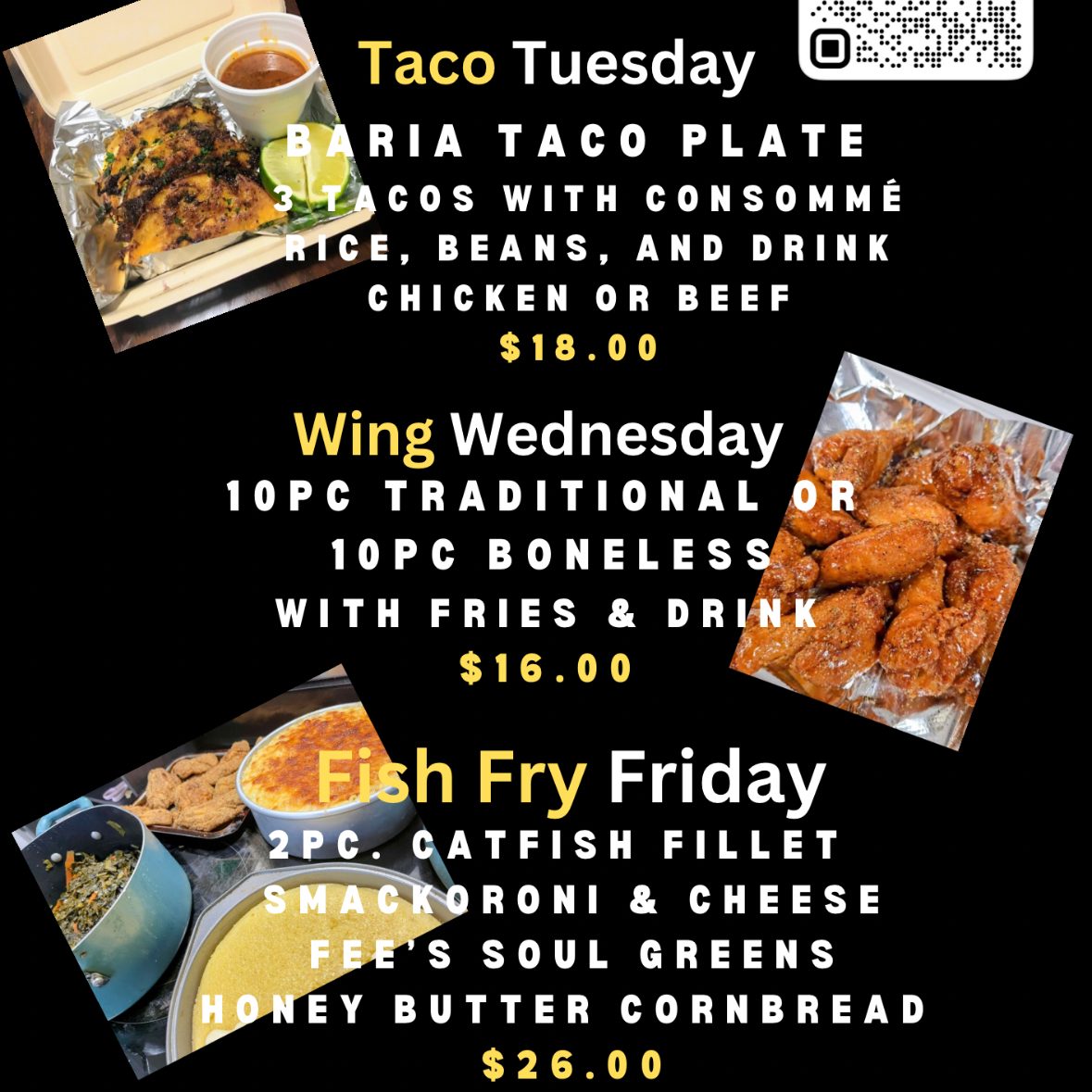 Fee's Catering Cafe will be open Tuesdays.Wednesday's and fridays from 11:30am to 7pm or until sold out with rotating saturdays.